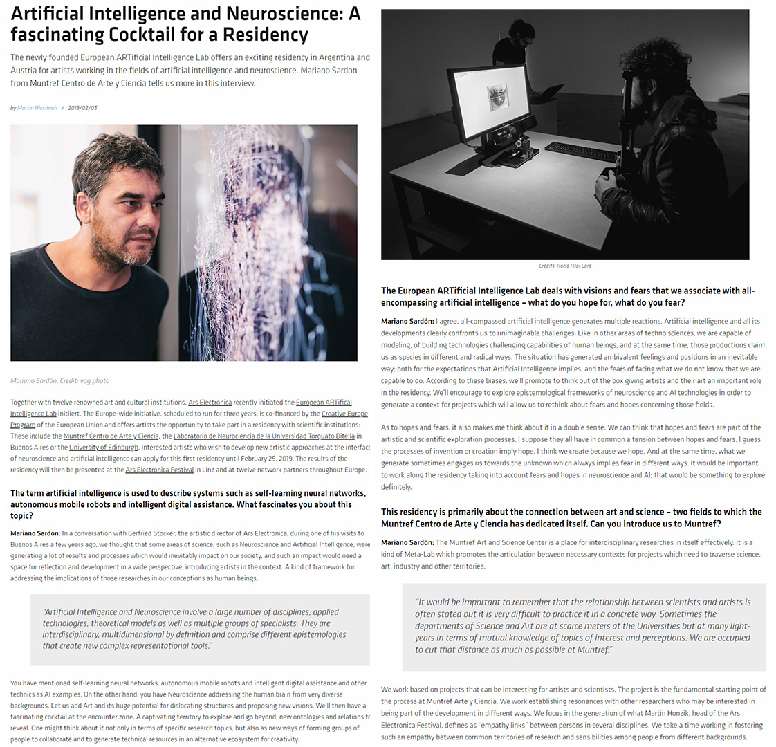 Residency in Buenos Aires and Linz - (Muntref Art and Science Center - Laboratorio de Neurociencia de la Universidad Torcuato Di Tella - Ars Electronica Futurelab)