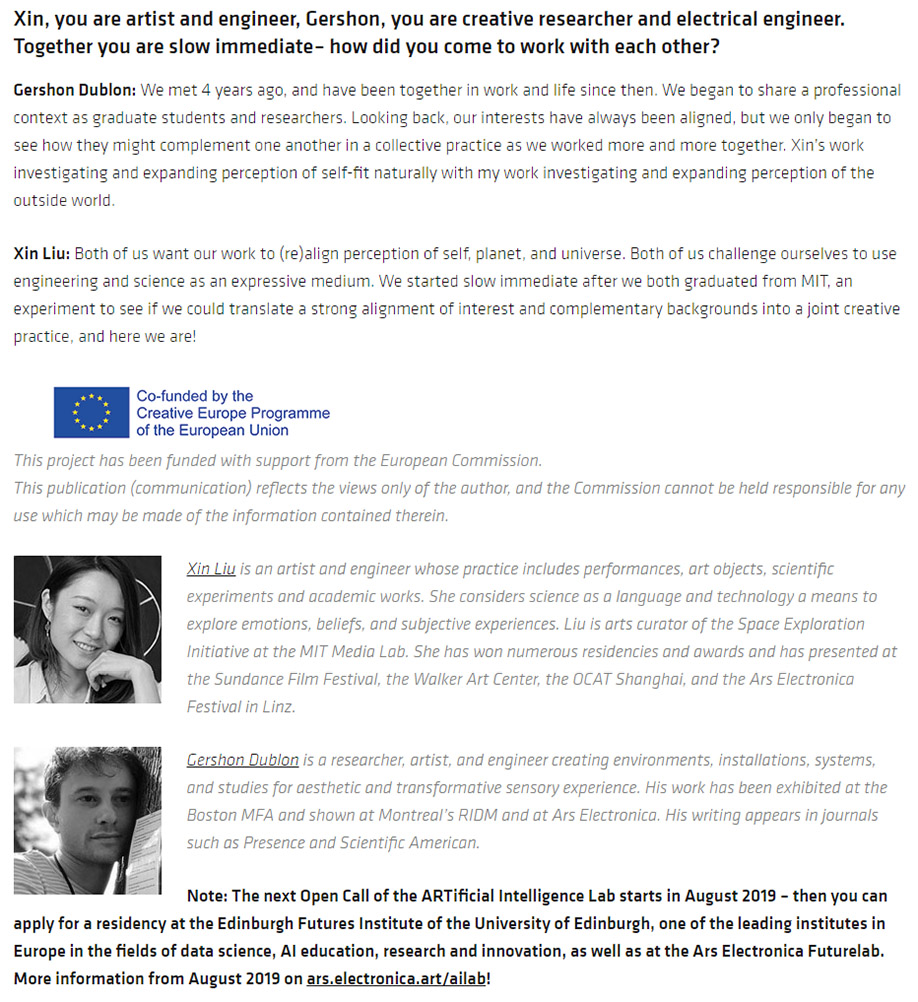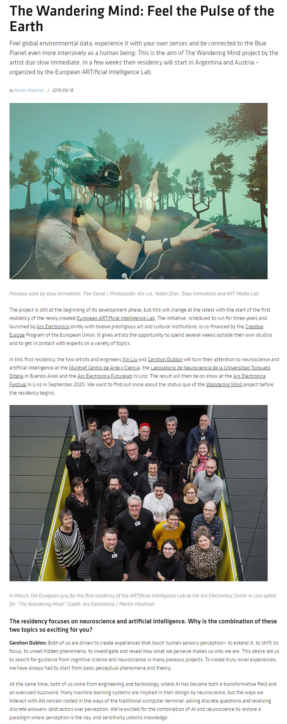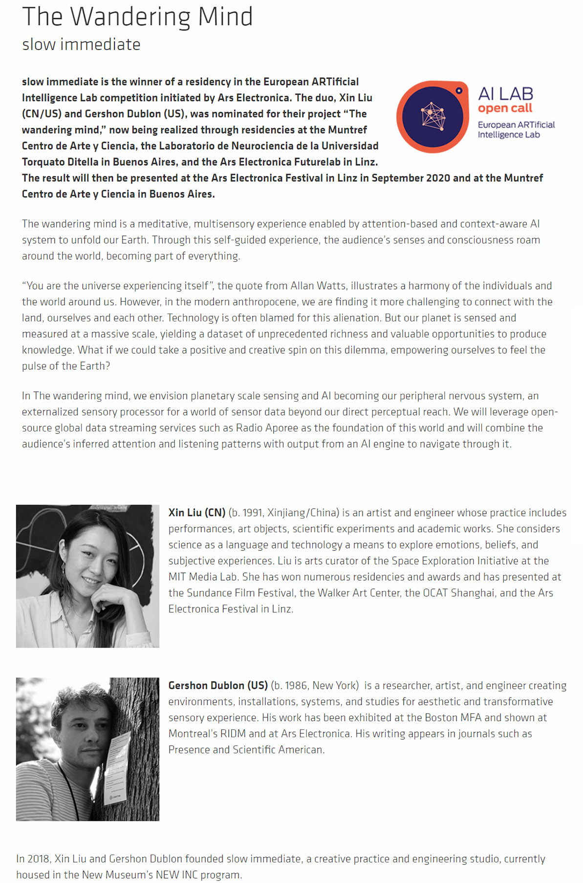 Slow Immediate wins a residency in Argentina and at the Ars Electronica Futurelab in Linz.