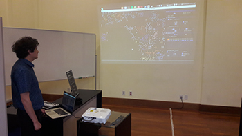 Leandro Garber, teacher and coordinator of the AudioStellar research project, and Tomás Ciccola, scholarship student and advanced student of the Degree in Electronic Arts, traveled to Brazil to present a demo version of AudioStellar. The project is part of the research carried out both in the Machine Learning & Art Lab within the MUNTREF Center for Art and Science. Currently the project has the participation of several thesis students of Electronic Arts and is open to the incorporation of other students who wish to collaborate.