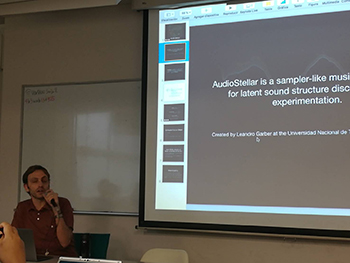 AudioStellar Project was presented at the workshop on Artificial Intelligence applied to Music Composition held at the Tokyo University of the Arts. Agustín Spinetto gave a talk about AudioStellar sampler-like software instrument and how it uses AI to generate a 2D intelligent audio map to organize audio samples by their audio spectrally characteristics.