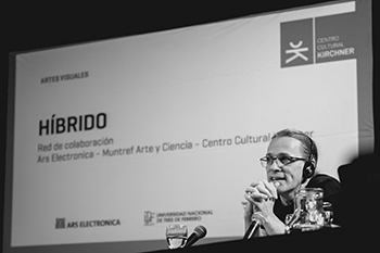 The participants of the Transorganic Exchanges project participated of a round table at the Kirchner Cultural Center (CCK) together with other artists and scientists in the Ars Electronica Hybrid Cycle. They presented the theoretical and conceptual framework that identifies the project.